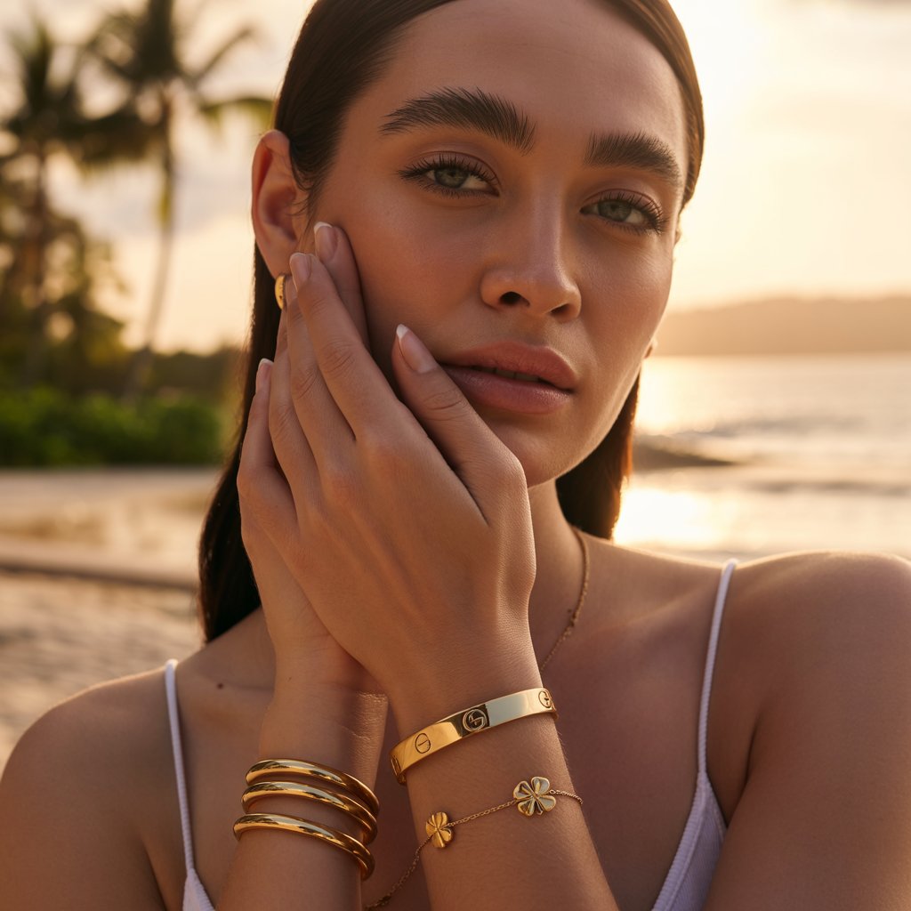 Every piece begins with a simple belief: your jewelry should move with your life, not limit it. From sunrise swimsto sunset celebrations, we craft pieces that embraceevery moment with you.